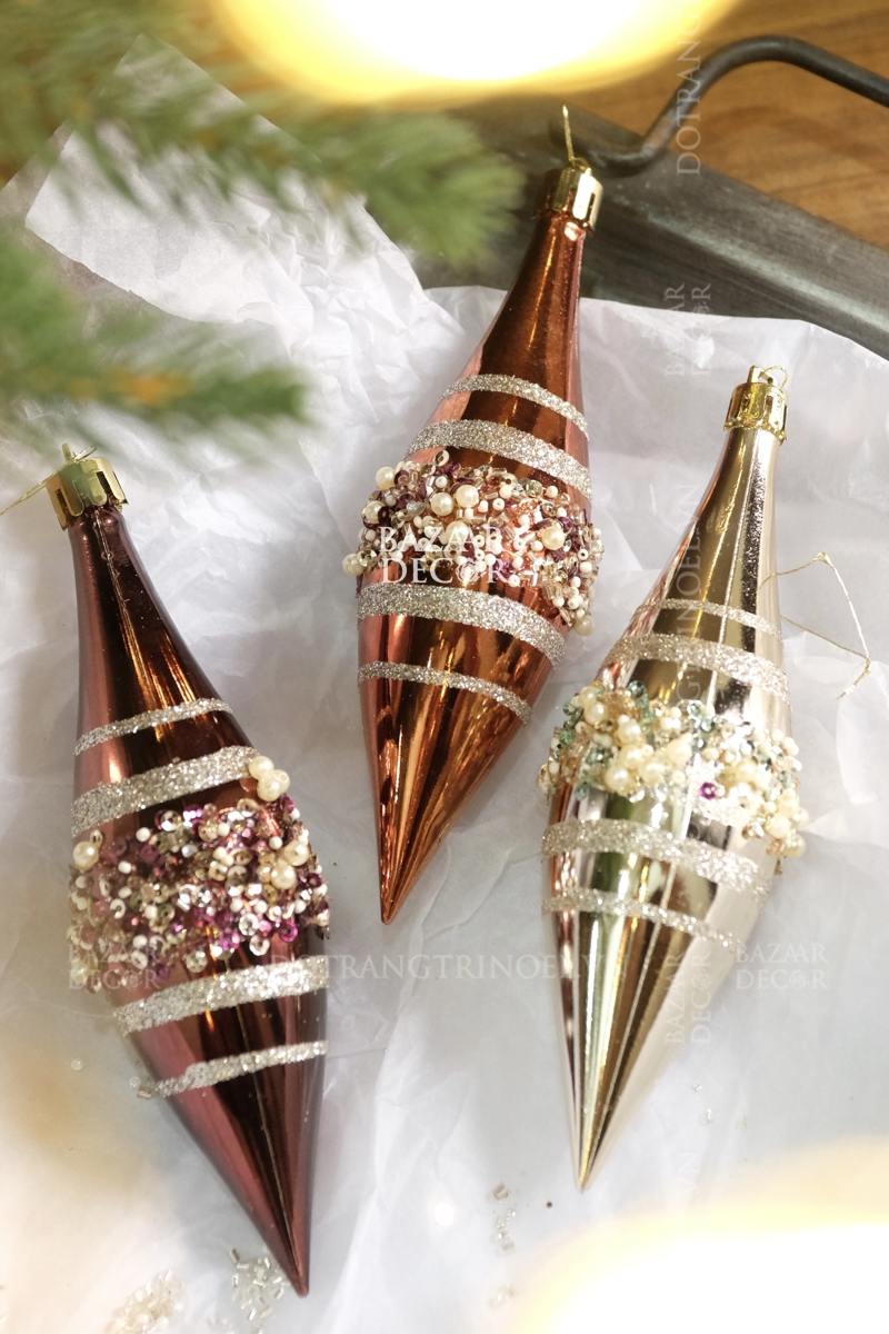 Hộp quả châu Luxury giọt băng tuyết đính hạt đỏ đồng 12CM 3T |