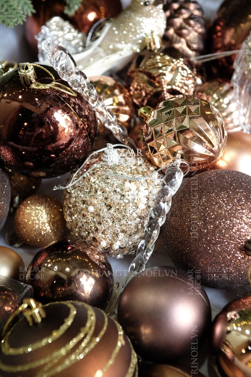 1 bộ phụ kiện số lượng phù hợp cho cây thông 150-180cm trang trí vừa phải. Nếu muốn trang trí dầy hơn hoặc cây lớn hơn có thể mua 2-3 bộ hoặc mua thêm các phụ kiện rời cùng tone