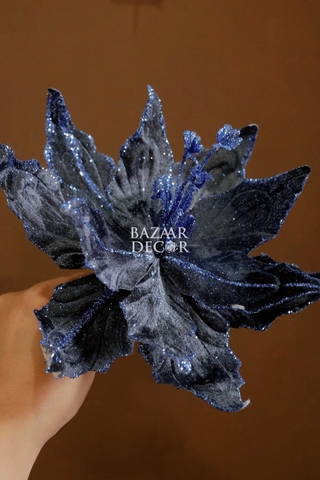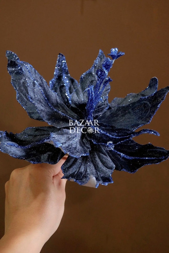 Hãng: BAZACành hoa trạng nguyên Royal nhung viền kim tuyến 28CM - Xanh đậm