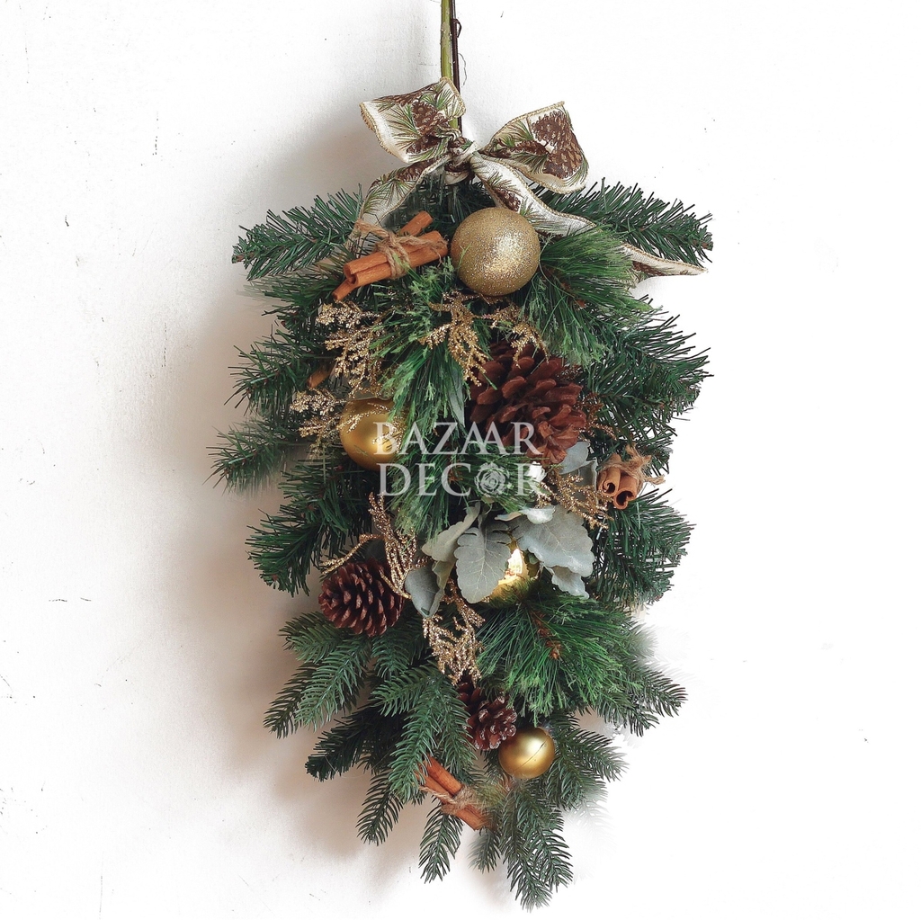 Sản phẩm cành thông treo cửa Giáng Sinh được làm thủ công... trang trí phòng khách, phòng ngủ, mặt tiền nhà, cửa hàng, nhà hàng quán cafe hay studio... mang lại không khí vui tươi và sinh động cho không gian mùa lễ hội
