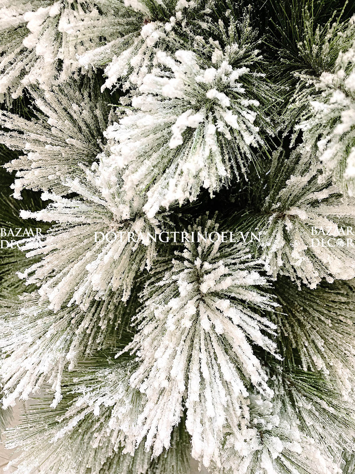 Một số mẫu cây thông tán dầy Phủ tuyết đã trang trí tham khảo. By Bazaar Decor.