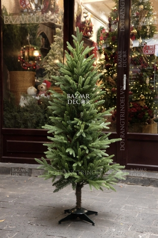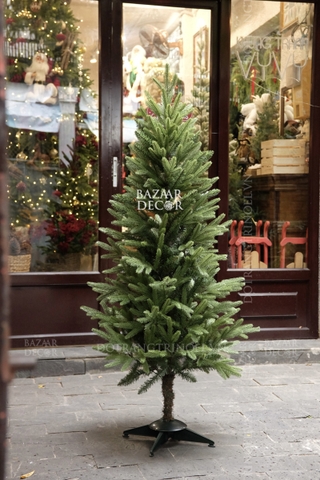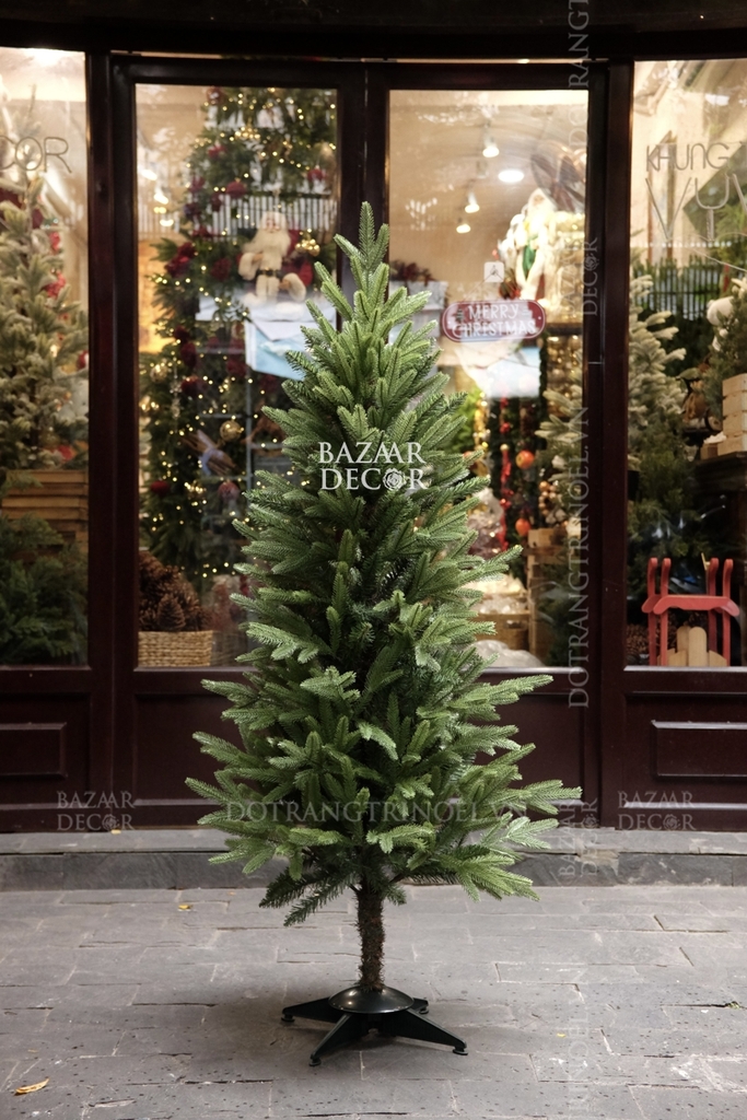 Cây thông chất liệu lá PE mix với lá cước, form cây ốm thích hợp cho các không gian nhỏ gọn, góc phòng hoặc các vị trí cần tiết kiệm không gian... Lưu ý: phần tán lá PE nằm bên ngoài, bên trong có lá cước để cây dầy và xôm tụ và đẹp tự nhiên hơn.