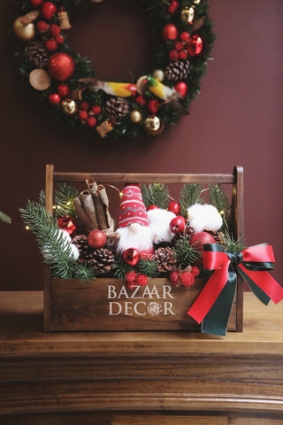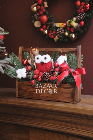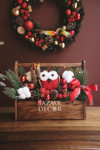 𝑺𝒆𝒕 𝒌𝒉𝒂𝒚 𝒏𝒆̂́𝒏 / 𝑪𝒆𝒏𝒕𝒆𝒓𝒑𝒊𝒆𝒄𝒆𝒔 gồm các phụ kiện xinh xắn quả thông khô, khúc cây, que củi, quả berry, quả châu… đặt vừa trong khay gỗ, có thể dùng trang trí quầy tính tiền, tủ kệ, bàn làm việc, bàn tiệc… tươi vui sinh động ngập tràn không khí lễ hội