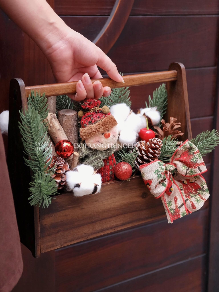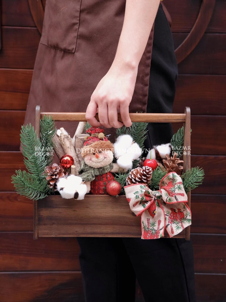 Giao hàng tận nhà trên toàn quốcCenterpiece Snowmen khay gỗ có quai xách 10x30x25cm | Quà tặng Noel