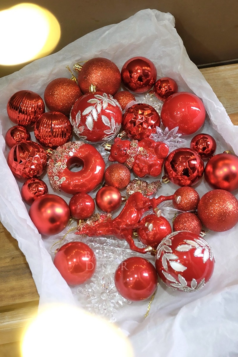 Mỗi hộp là một bản phối cho mùa lễ hội: quả châu và phụ kiện nhiều kiểu dáng được chọn lọc theo cùng tone màu, chỉ cần mở ra và treo lên, bạn đã có thể hoàn thiện một cây thông rực rỡ và đẹp mắt tràn ngập không khí Giáng Sinh – như thể mọi chi tiết đều tìm thấy đúng vị trí của mình.