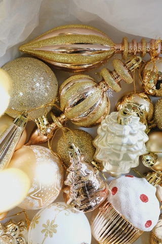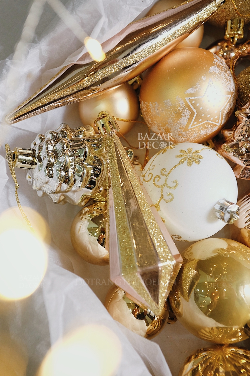 Mỗi hộp là một bản phối cho mùa lễ hội: quả châu và phụ kiện nhiều kiểu dáng được chọn lọc theo cùng tone màu, chỉ cần mở ra và treo lên, bạn đã có thể hoàn thiện một cây thông rực rỡ và đẹp mắt tràn ngập không khí Giáng Sinh – như thể mọi chi tiết đều tìm thấy đúng vị trí của mình.