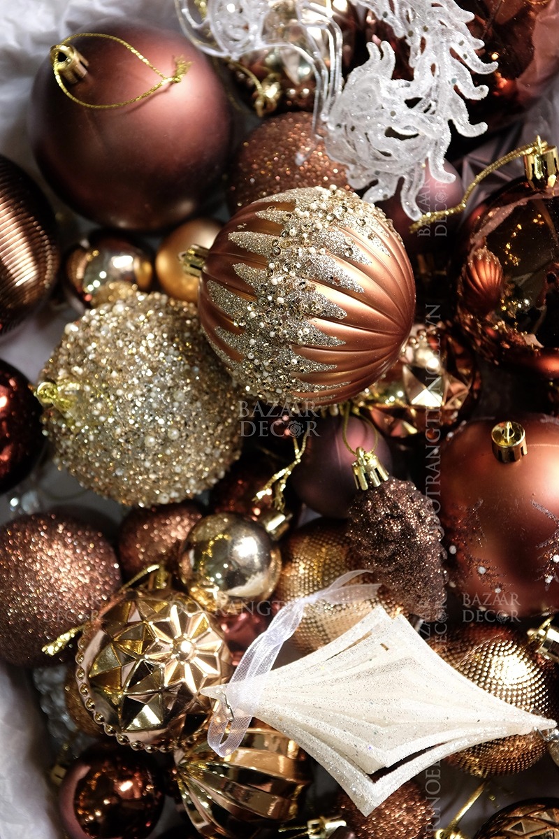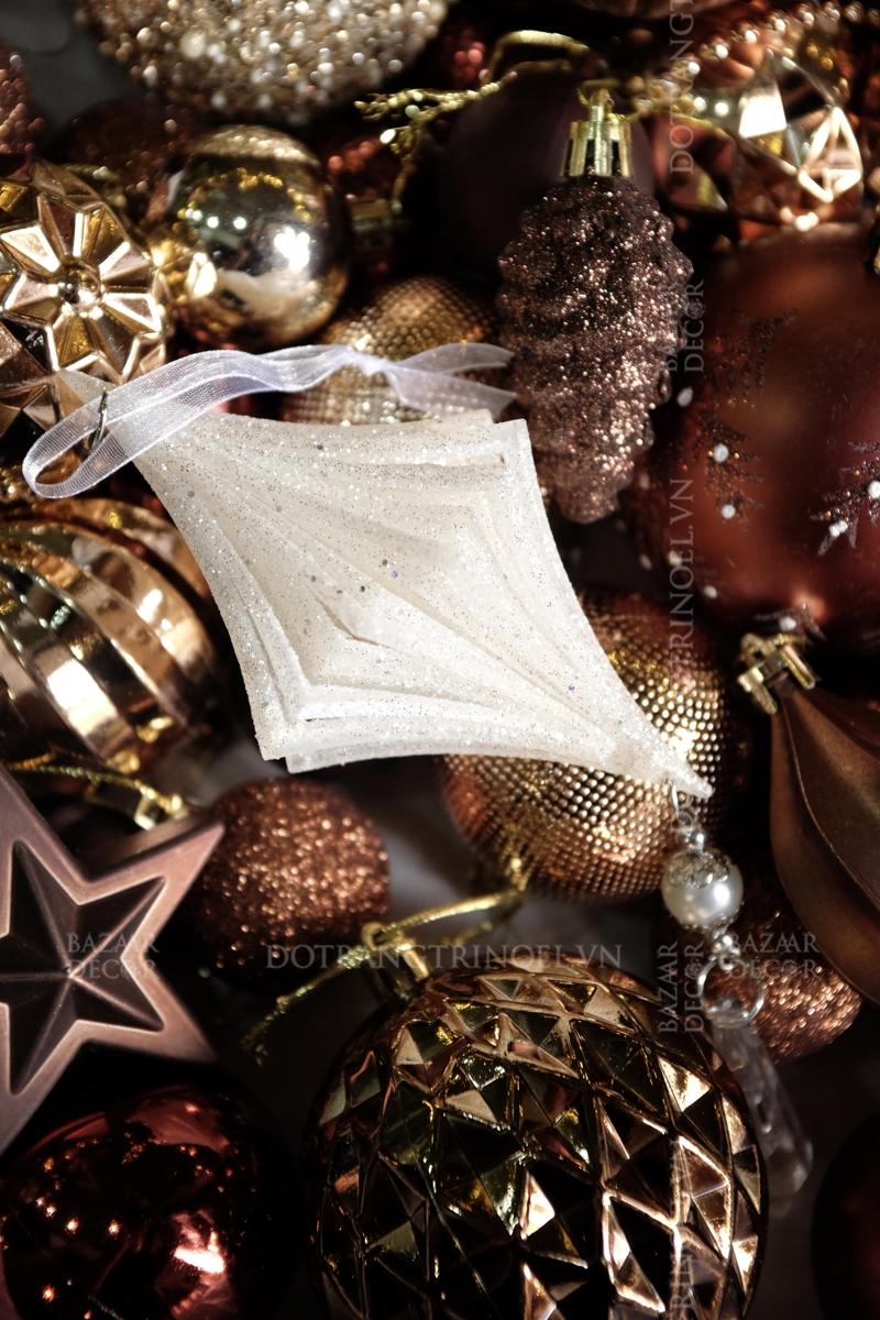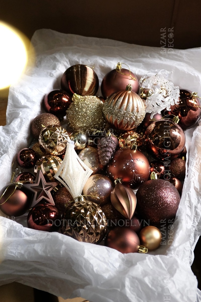 Mỗi hộp là một bản phối cho mùa lễ hội: quả châu và phụ kiện nhiều kiểu dáng được chọn lọc theo cùng tone màu, chỉ cần mở ra và treo lên, bạn đã có thể hoàn thiện một cây thông rực rỡ và đẹp mắt tràn ngập không khí Giáng Sinh – như thể mọi chi tiết đều tìm thấy đúng vị trí của mình.