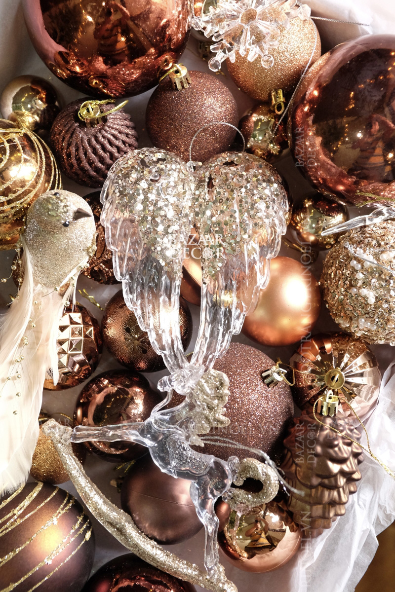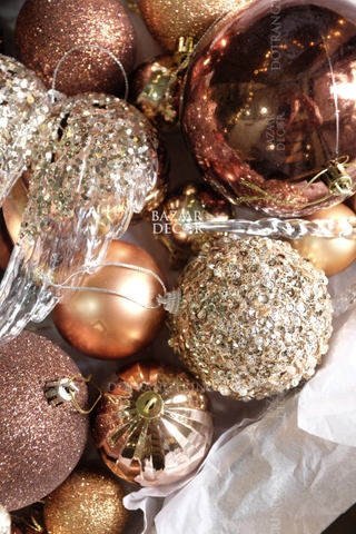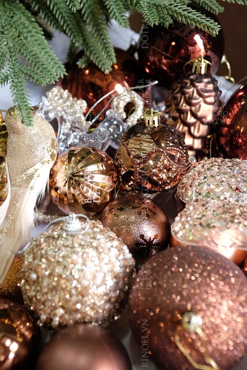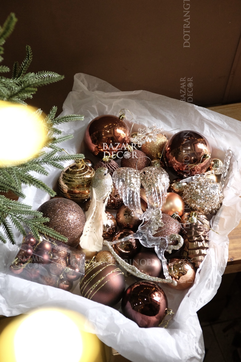 Mỗi hộp là một bản phối cho mùa lễ hội: quả châu và phụ kiện nhiều kiểu dáng được chọn lọc theo cùng tone màu, chỉ cần mở ra và treo lên, bạn đã có thể hoàn thiện một cây thông rực rỡ và đẹp mắt tràn ngập không khí Giáng Sinh – như thể mọi chi tiết đều tìm thấy đúng vị trí của mình.