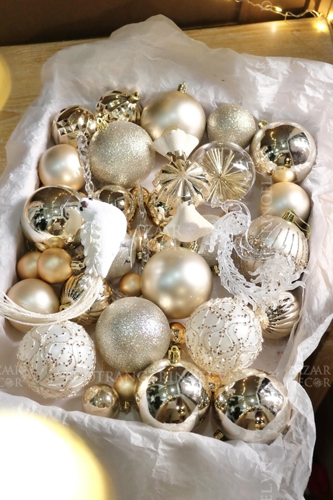 Mỗi hộp là một bản phối cho mùa lễ hội: quả châu và phụ kiện nhiều kiểu dáng được chọn lọc theo cùng tone màu, chỉ cần mở ra và treo lên, bạn đã có thể hoàn thiện một cây thông rực rỡ và đẹp mắt tràn ngập không khí Giáng Sinh – như thể mọi chi tiết đều tìm thấy đúng vị trí của mình.