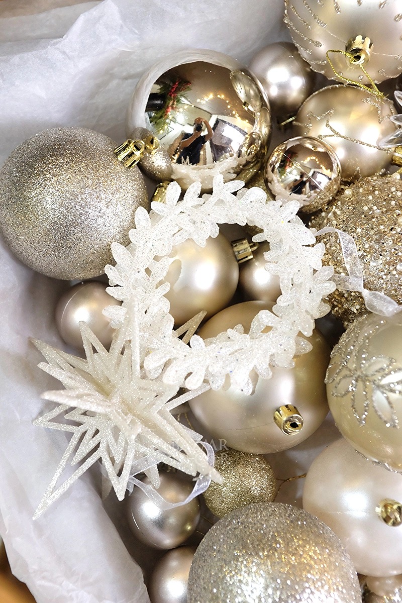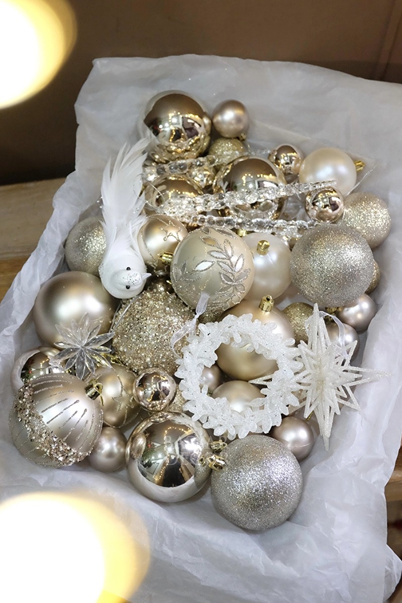 Mỗi hộp là một bản phối cho mùa lễ hội: quả châu và phụ kiện nhiều kiểu dáng được chọn lọc theo cùng tone màu, chỉ cần mở ra và treo lên, bạn đã có thể hoàn thiện một cây thông rực rỡ và đẹp mắt tràn ngập không khí Giáng Sinh – như thể mọi chi tiết đều tìm thấy đúng vị trí của mình.