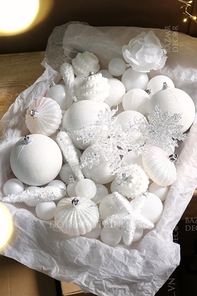 Mỗi hộp là một bản phối cho mùa lễ hội: quả châu và phụ kiện nhiều kiểu dáng được chọn lọc theo cùng tone màu, chỉ cần mở ra và treo lên, bạn đã có thể hoàn thiện một cây thông rực rỡ và đẹp mắt tràn ngập không khí Giáng Sinh – như thể mọi chi tiết đều tìm thấy đúng vị trí của mình.