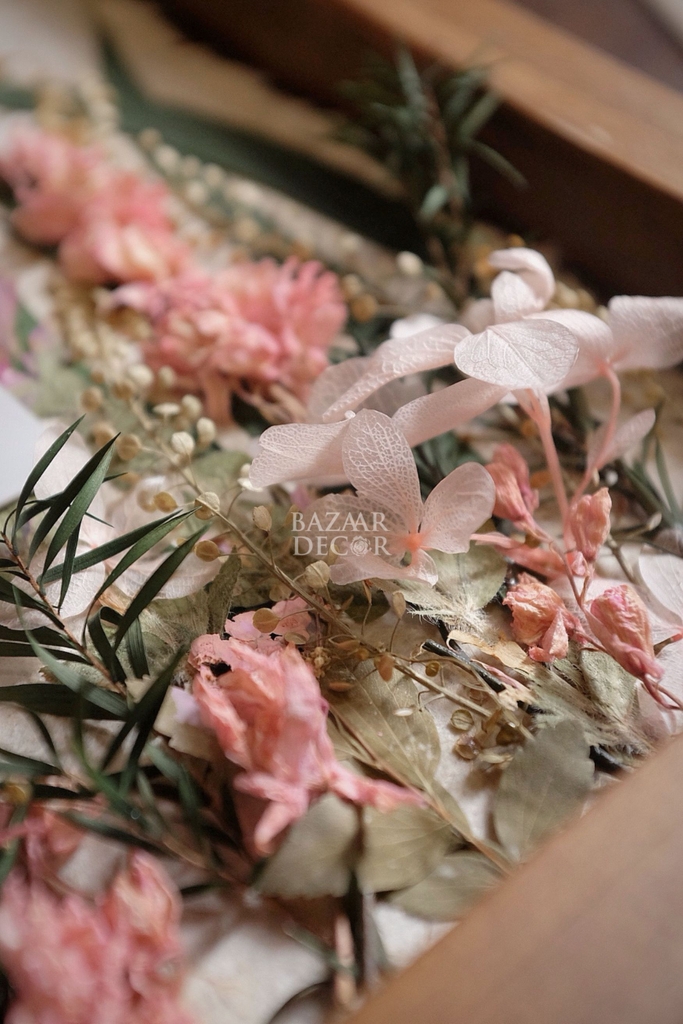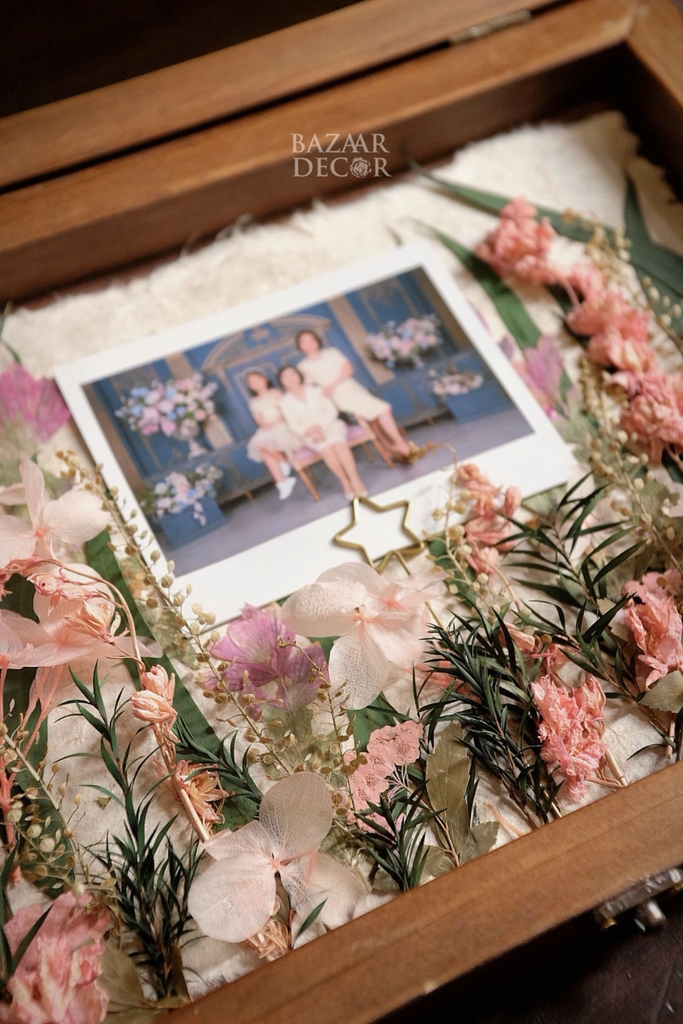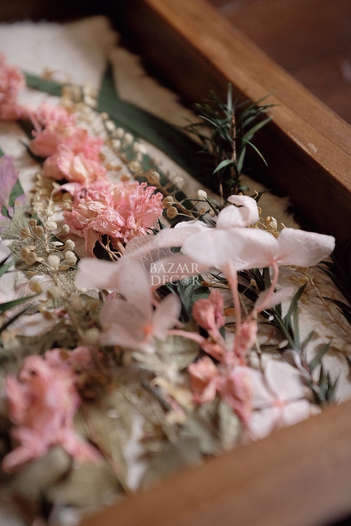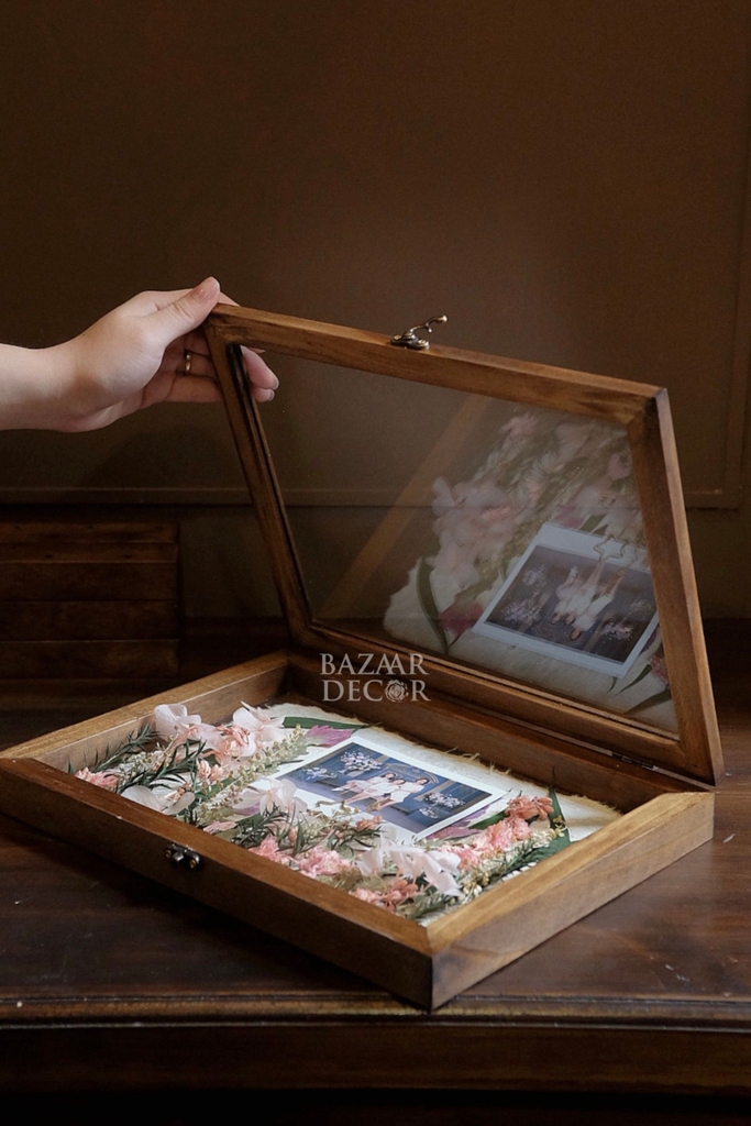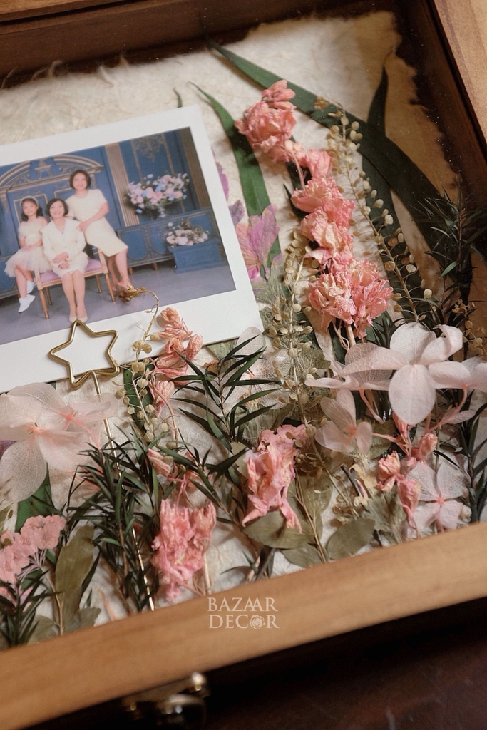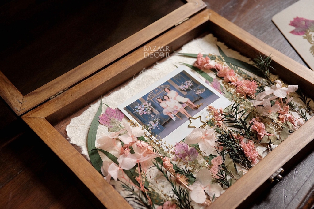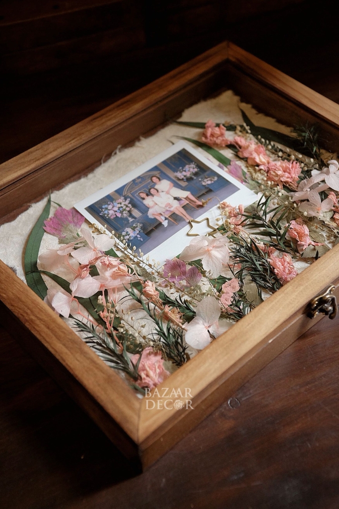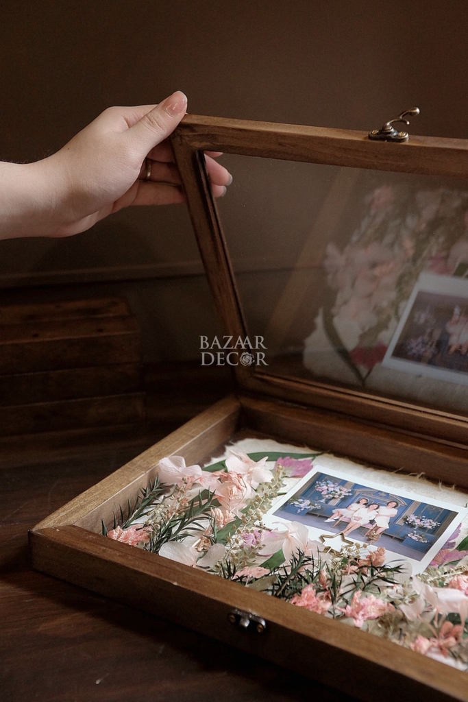 Chiếc hộp gỗ nhỏ không chỉ chứa đựng những bông hoa khô được sắp xếp 1 cách tinh tế nghệ thuật mà còn là nơi lưu giữ ký ức và những khoảnh khắc đẹp đẽ tràn ngập cảm xúc