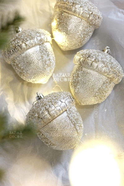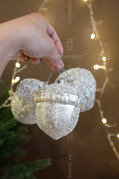 Hộp quả châu Luxury 4 quả sồi đính hạt 10CM 4T