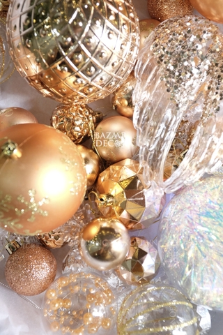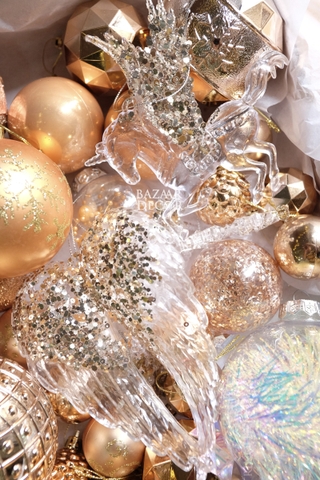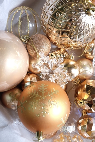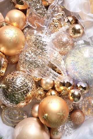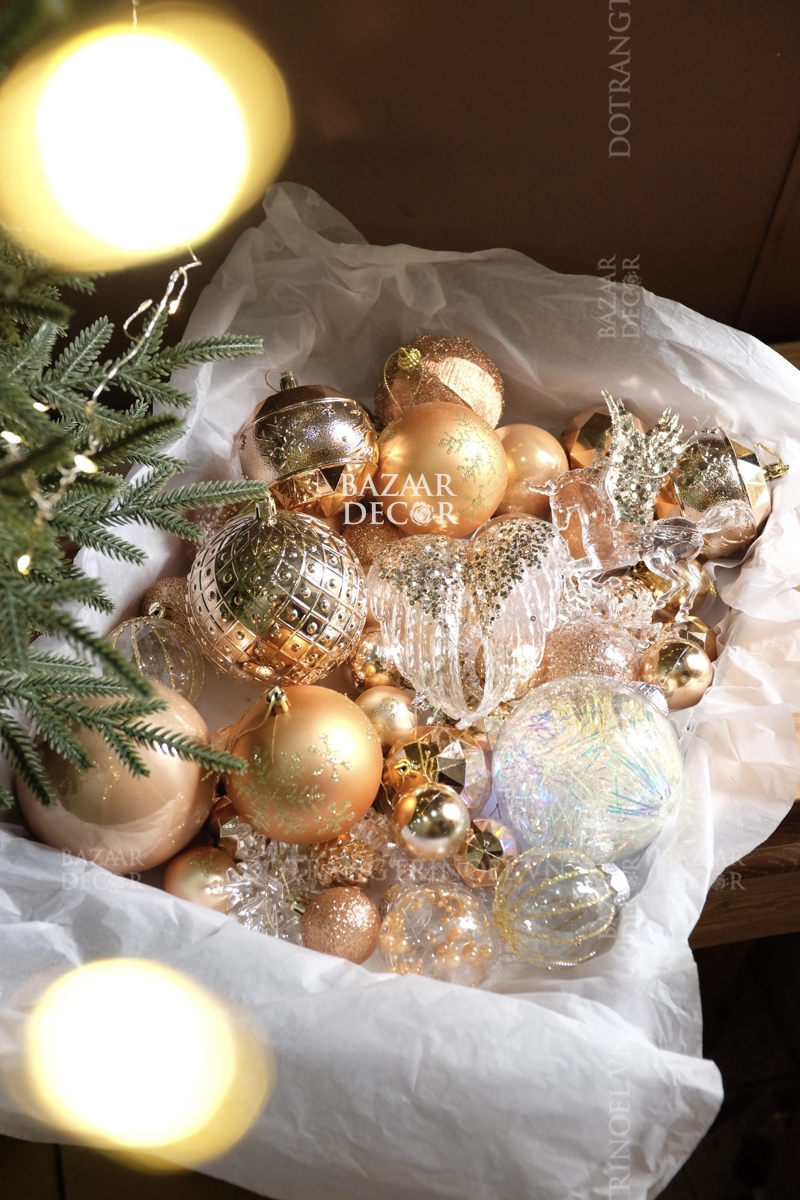 Mỗi hộp là một bản phối cho mùa lễ hội: quả châu và phụ kiện nhiều kiểu dáng được chọn lọc theo cùng tone màu, chỉ cần mở ra và treo lên, bạn đã có thể hoàn thiện một cây thông rực rỡ và đẹp mắt tràn ngập không khí Giáng Sinh – như thể mọi chi tiết đều tìm thấy đúng vị trí của mình.