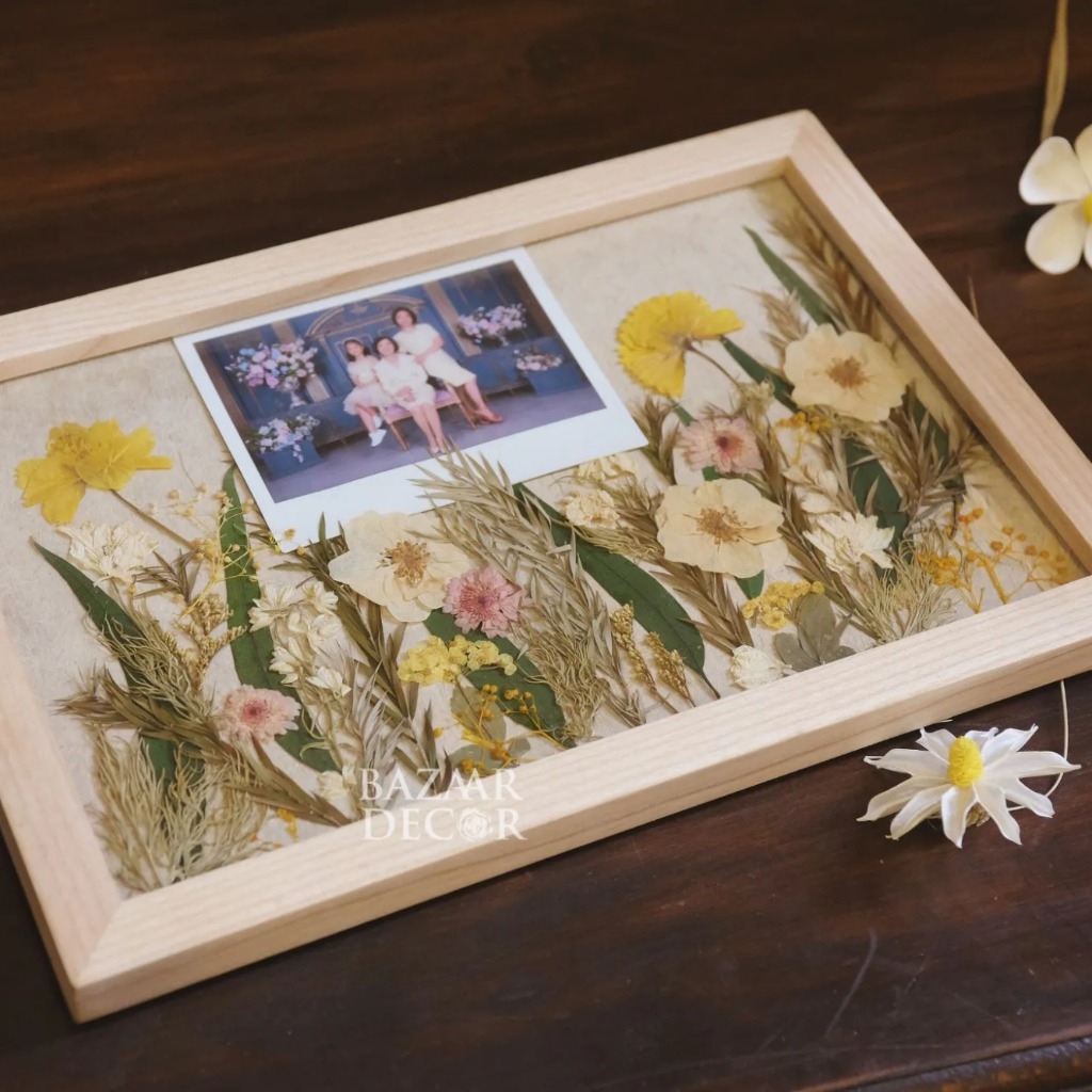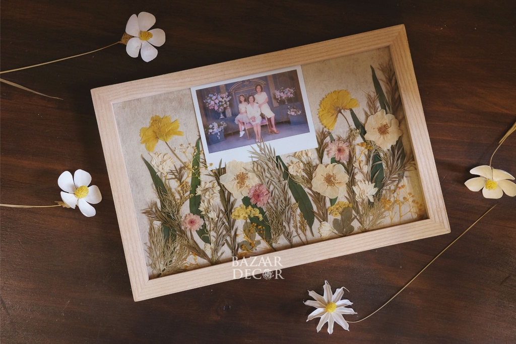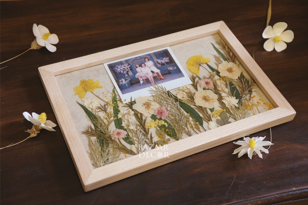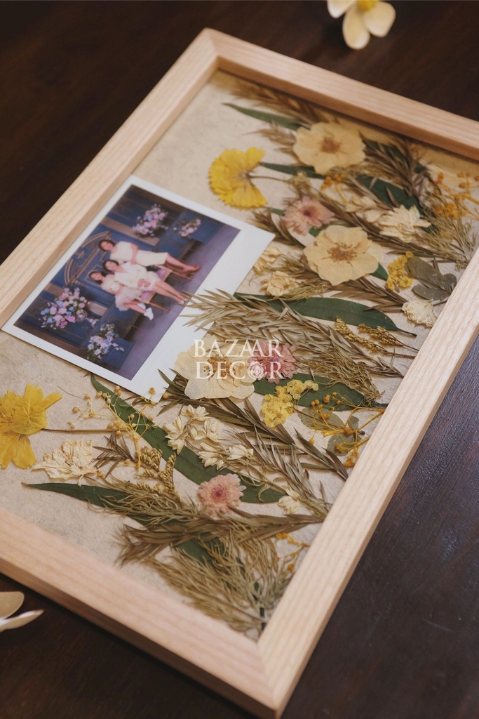 Khung gỗ ép sẵn hoa khô không chỉ là 1 bức tranh hoa khô độc đáo và tinh tế, mà bạn có thể lồng ghép những hình ảnh kỉ niệm vào khung để lưu giữ những khoảnh khắc thật sống động theo thời gian.