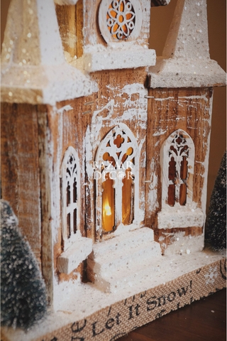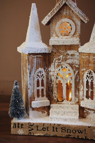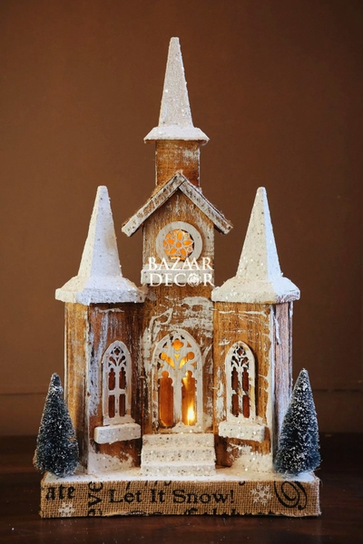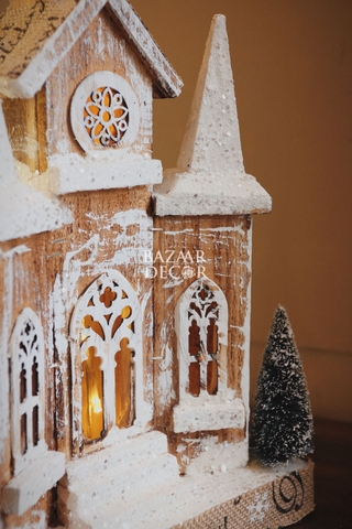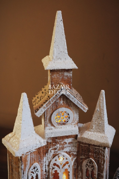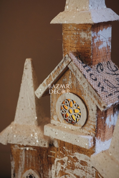 Hãng: Bazaar DecorMô hình nhà thờ gỗ châu Âu 25x44cm mẫu 3 tháp chuông