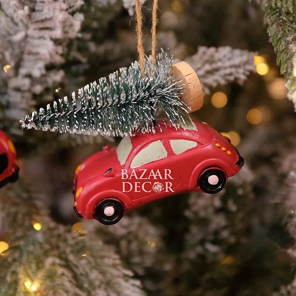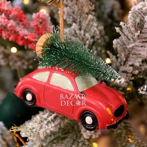 Phụ kiện Xe ô tô đỏ chở cây thông