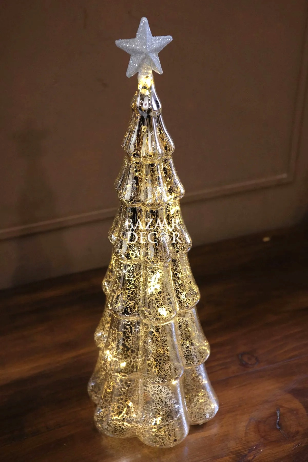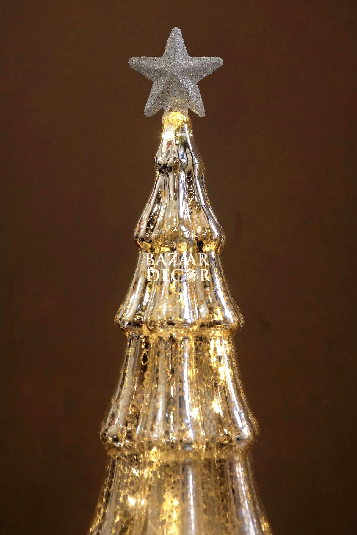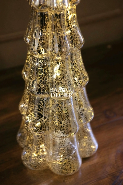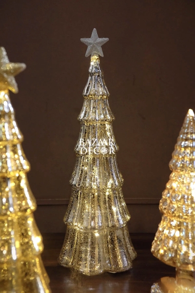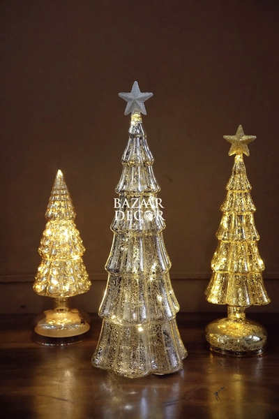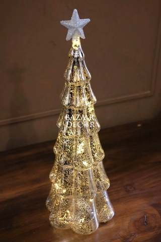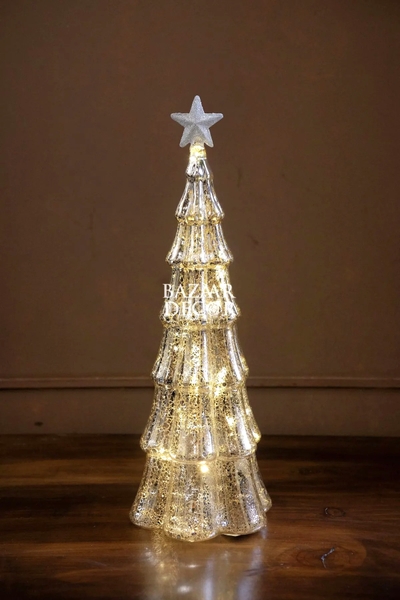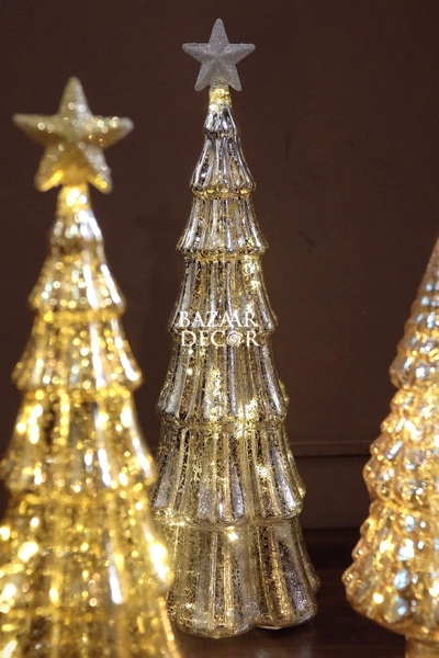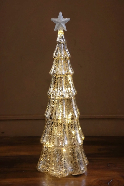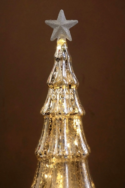 Hãng: BAZAMô hình cây thông thủy tinh Timeless gắn đèn Led trang trí - Sao bạc 13x36cm