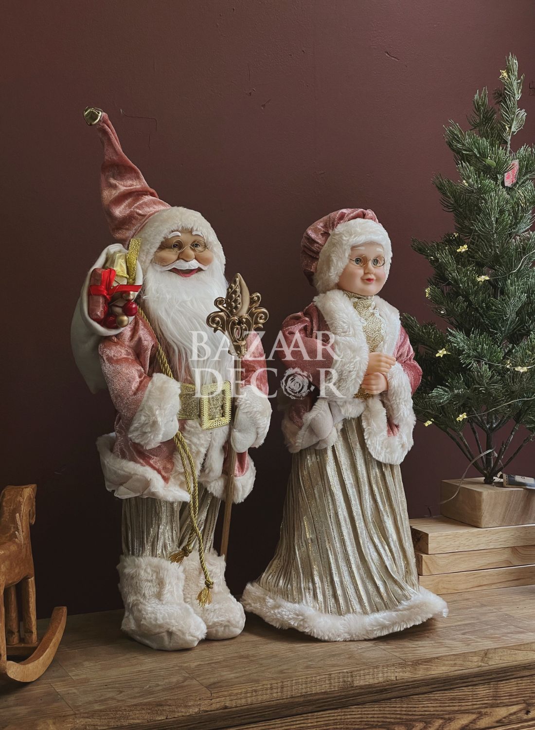 Bộ sưu tập búp bê ông già Noel với nhiều chất liệu và kiểu dáng, vải len dạ, nhung, lông thú nhân tạo.. kèm theo các phụ kiện đeo tay, thắt lưng, giày bốt... đáng yêu và cực kì thời trang. Có thể trang trí trước cửa, tủ kệ, dưới chân cây thông hay khu vực tiệc tùng để tạo điểm nhấn và sự thú vị.