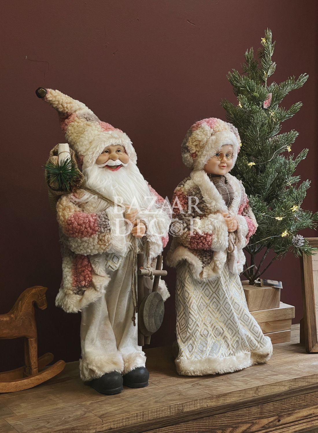 Bộ sưu tập búp bê ông già Noel với nhiều chất liệu và kiểu dáng, vải len dạ, nhung, lông thú nhân tạo.. kèm theo các phụ kiện đeo tay, thắt lưng, giày bốt... đáng yêu và cực kì thời trang. Có thể trang trí trước cửa, tủ kệ, dưới chân cây thông hay khu vực tiệc tùng để tạo điểm nhấn và sự thú vị.