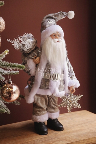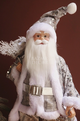 Ông già Noel 60cm. Áo choàng xám bạc Sequin hoa tuyết