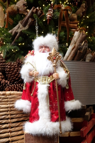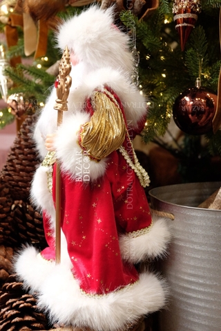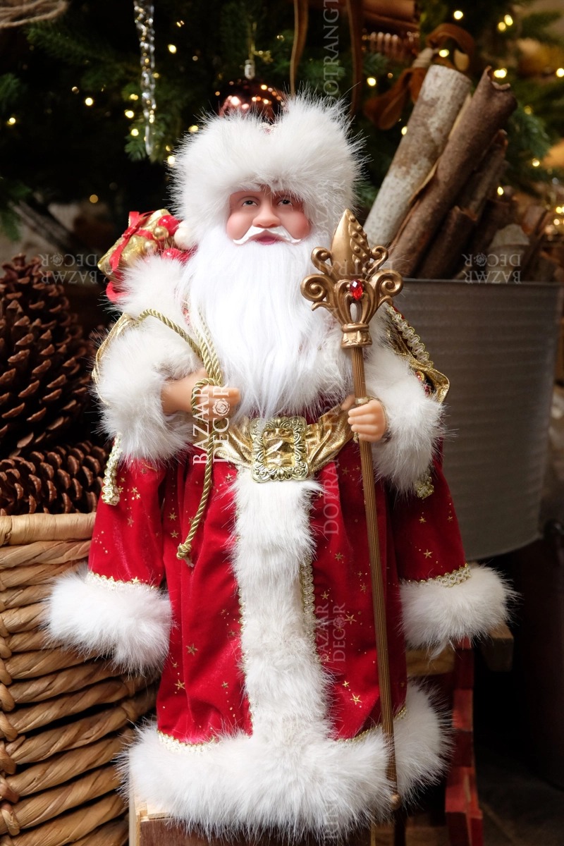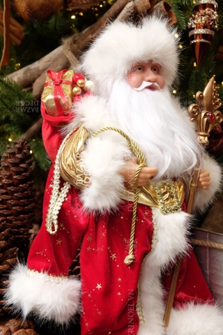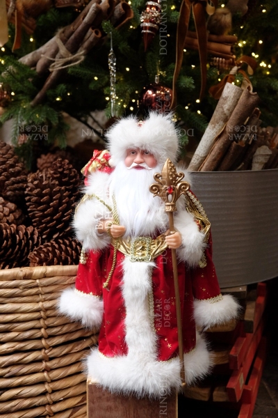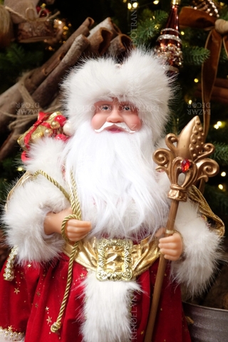 Ông già Noel mặc áo choàng đỏ và mũ lông Nga