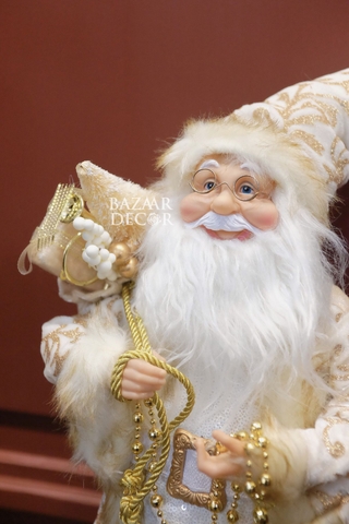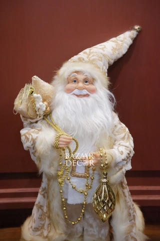 Hãng: BAZAÔng già Noel Royal 60cm (Kích thước từ chân đến chóp nón) - Áo choàng vàng trắng cầm dây chuỗi