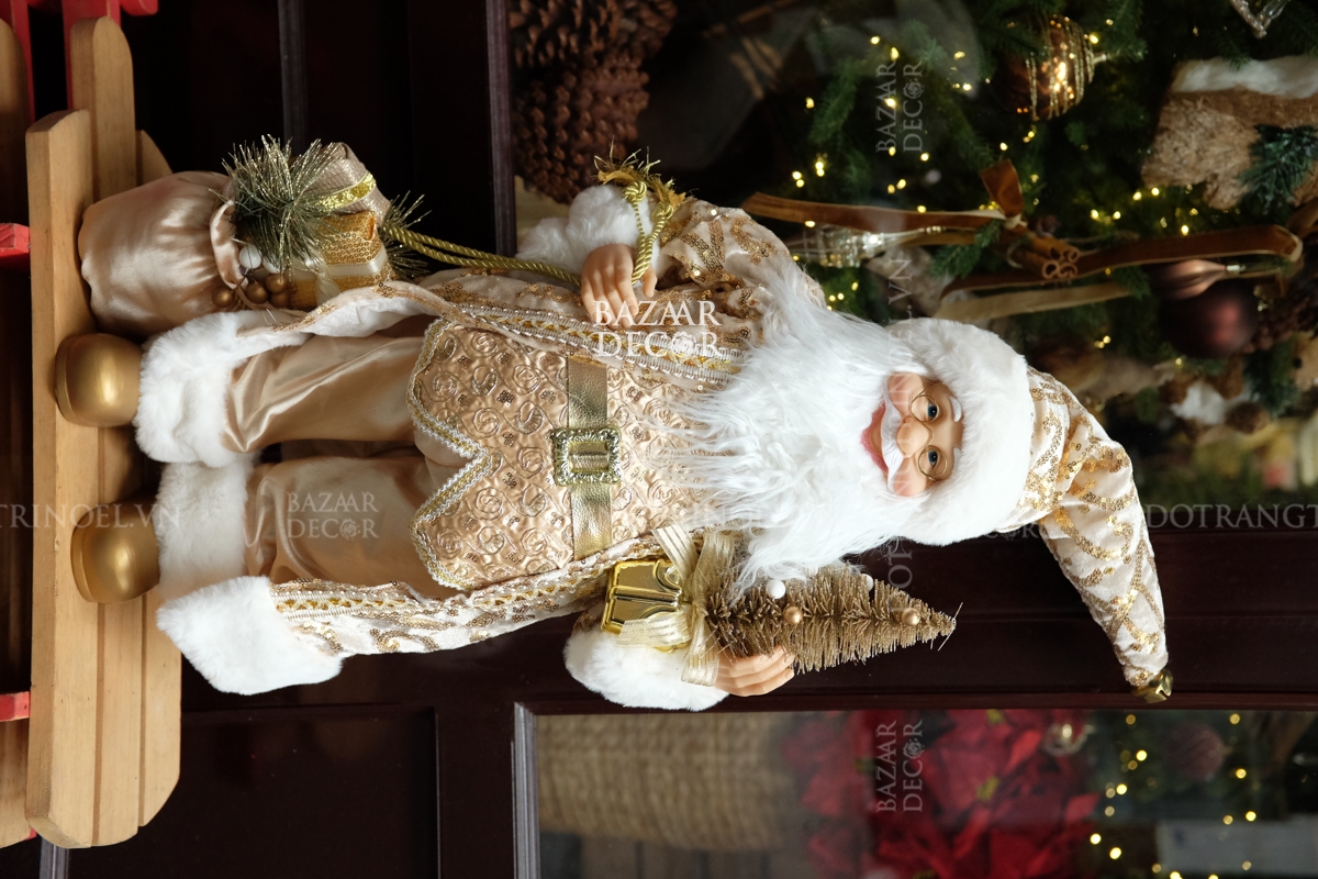 Ông già Noel Royal 80cm (Kích thước từ chân đến chóp nón) - Vàng trắng gold