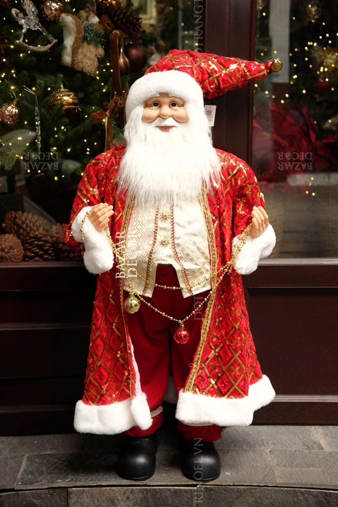 Giao hàng tận nơi trên toàn quốcÔng già Noel Royal Grand 120cm (Kích thước từ chân đến chóp nón) - Áo choàng đỏ vàng lấp lánh