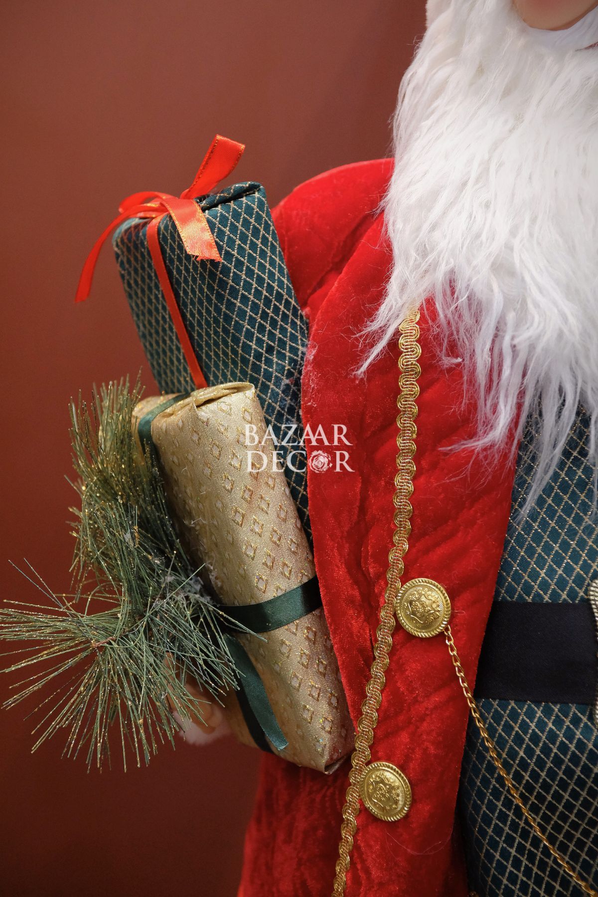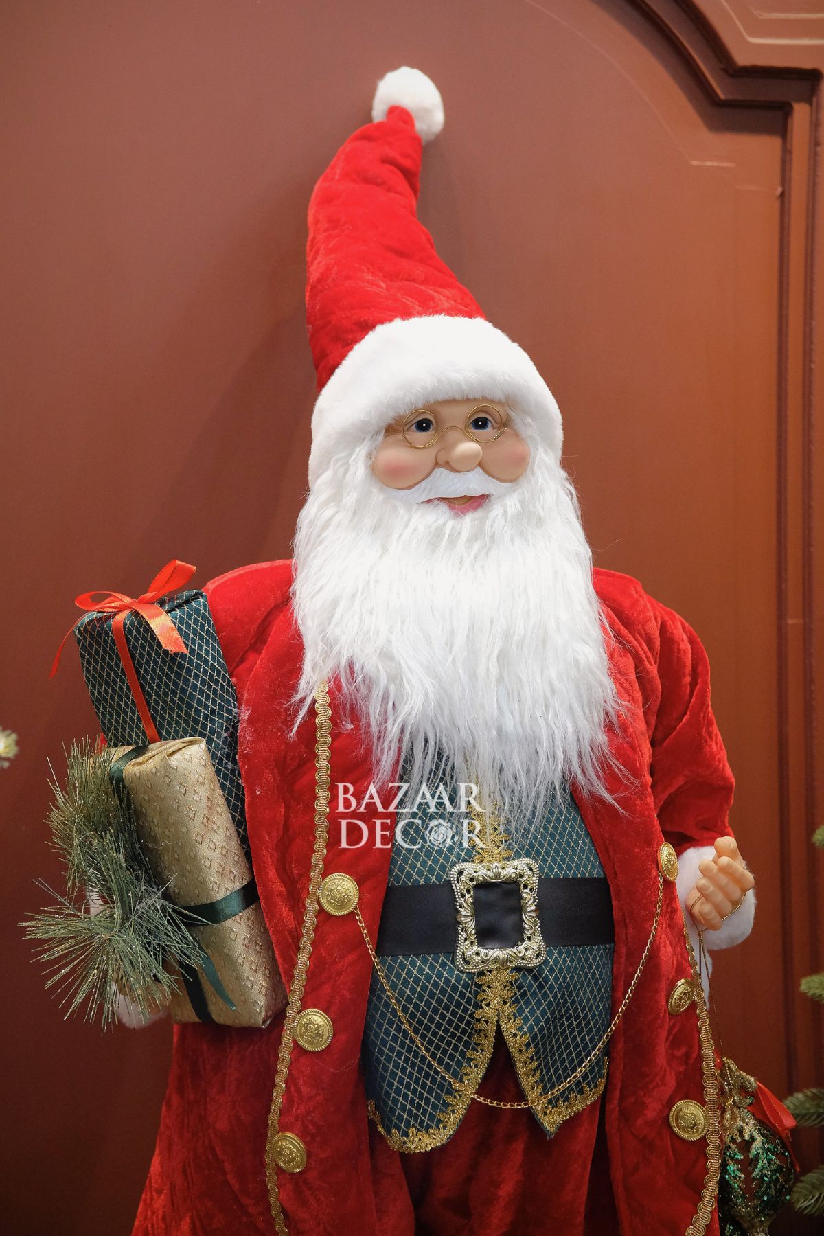 Giao hàng tận nơi trên toàn quốcÔng già Noel Royal Grand 120cm (Kích thước từ chân đến chóp nón) - Áo choàng nhung đỏ Vest hoàng gia