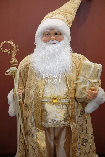 Giao hàng tận nơi trên toàn quốcÔng già Noel Royal Grand 120cm (Kích thước từ chân đến chóp nón) - Áo choàng vàng kim sa lấp lánh