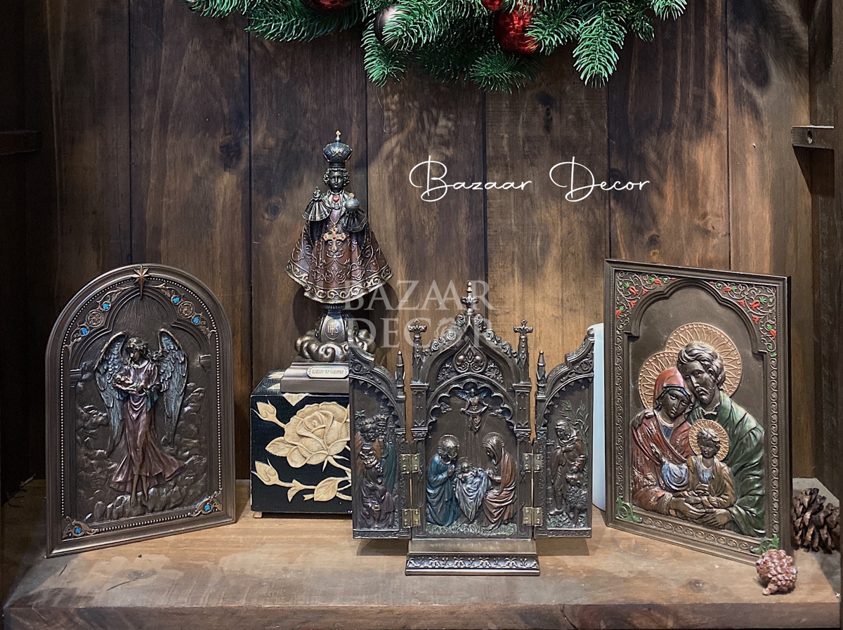Bộ sưu tập tượng và phù điêu giả đồng được thiết kế theo phong cách Gothic. Nguyên liệu composite đặc và chắc chắn. Màu sơn giả đồng cao cấp.