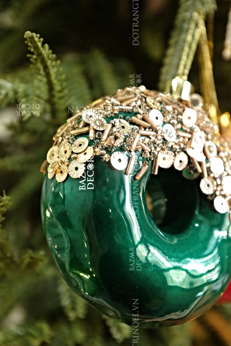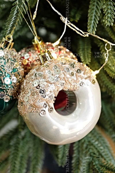 Bánh Donut lẻ phủ sequin - Phụ kiện treo Noël Pearl Gloss Donut 9CM