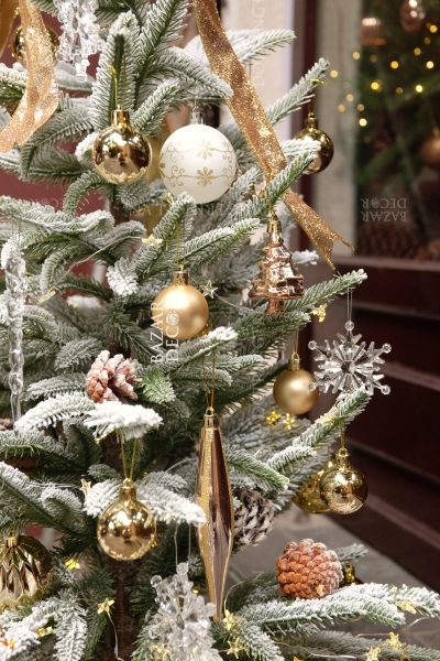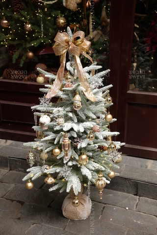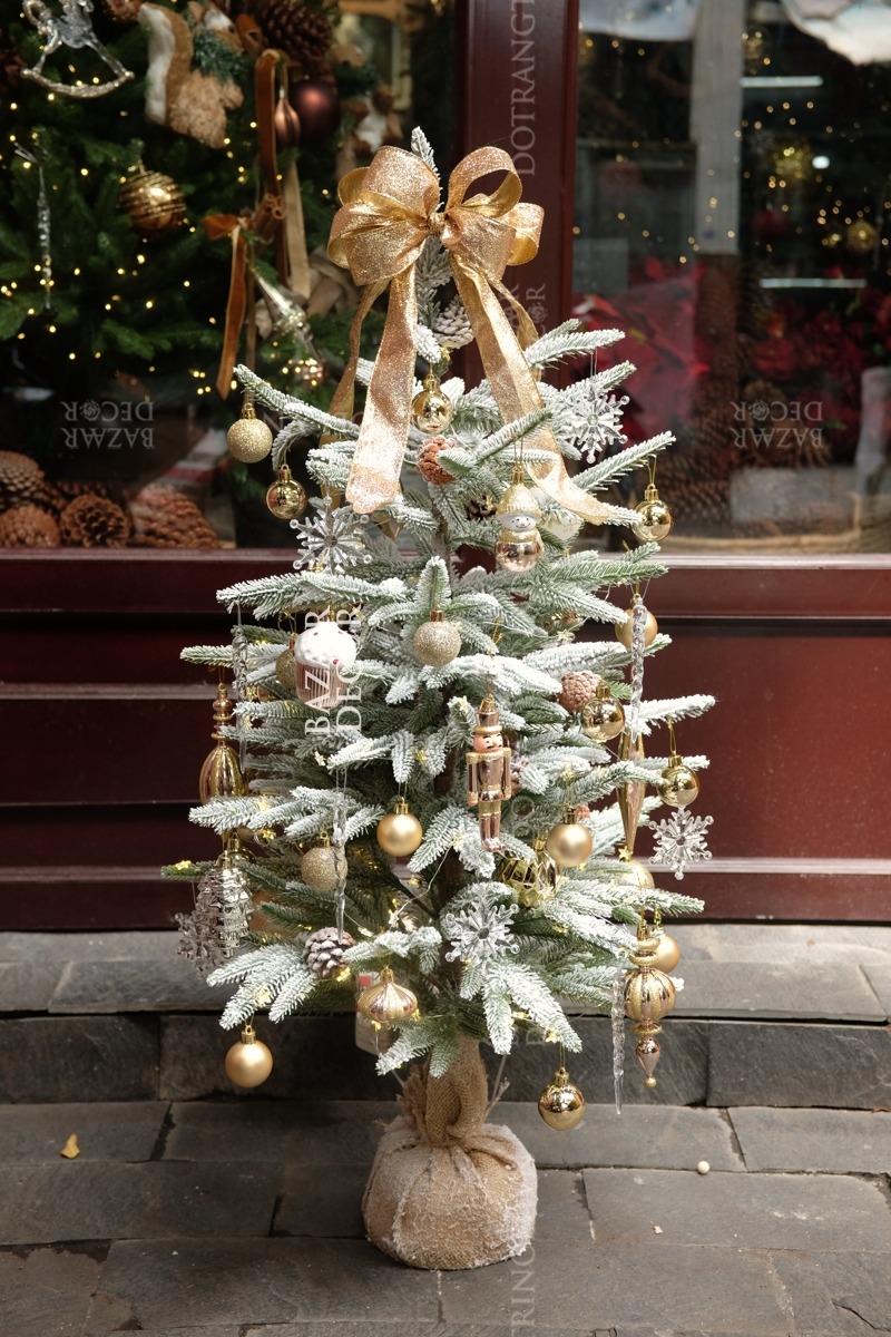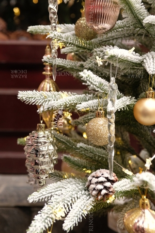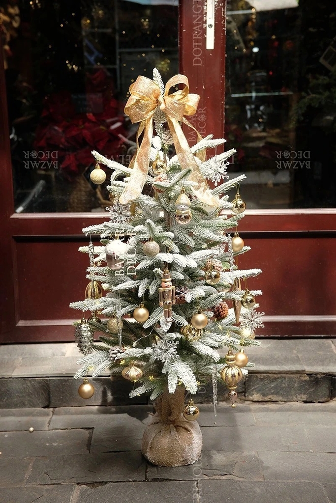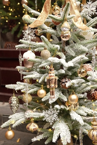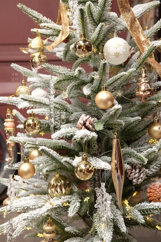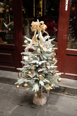 Set cây thông tuyết Alps tán thưa 100cm và bộ trang trí tone vàng hồng