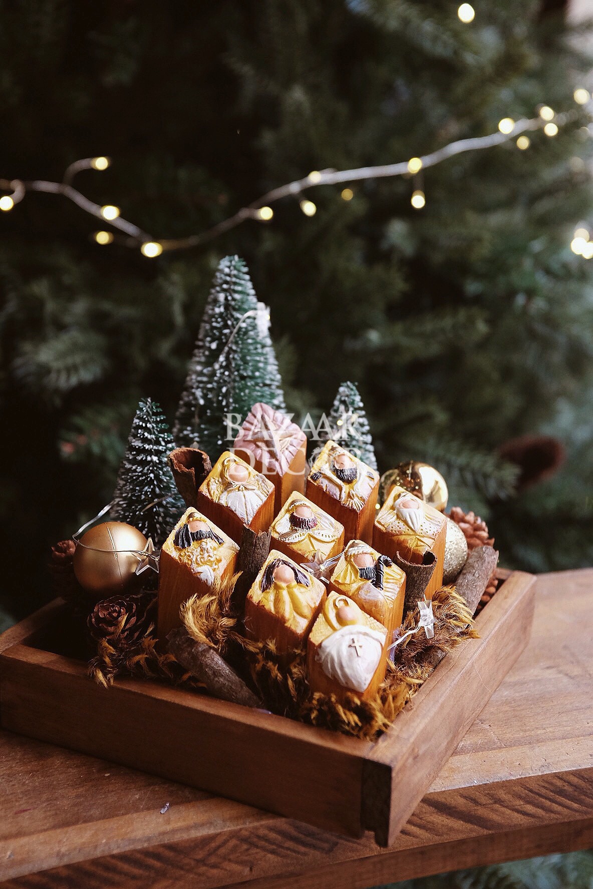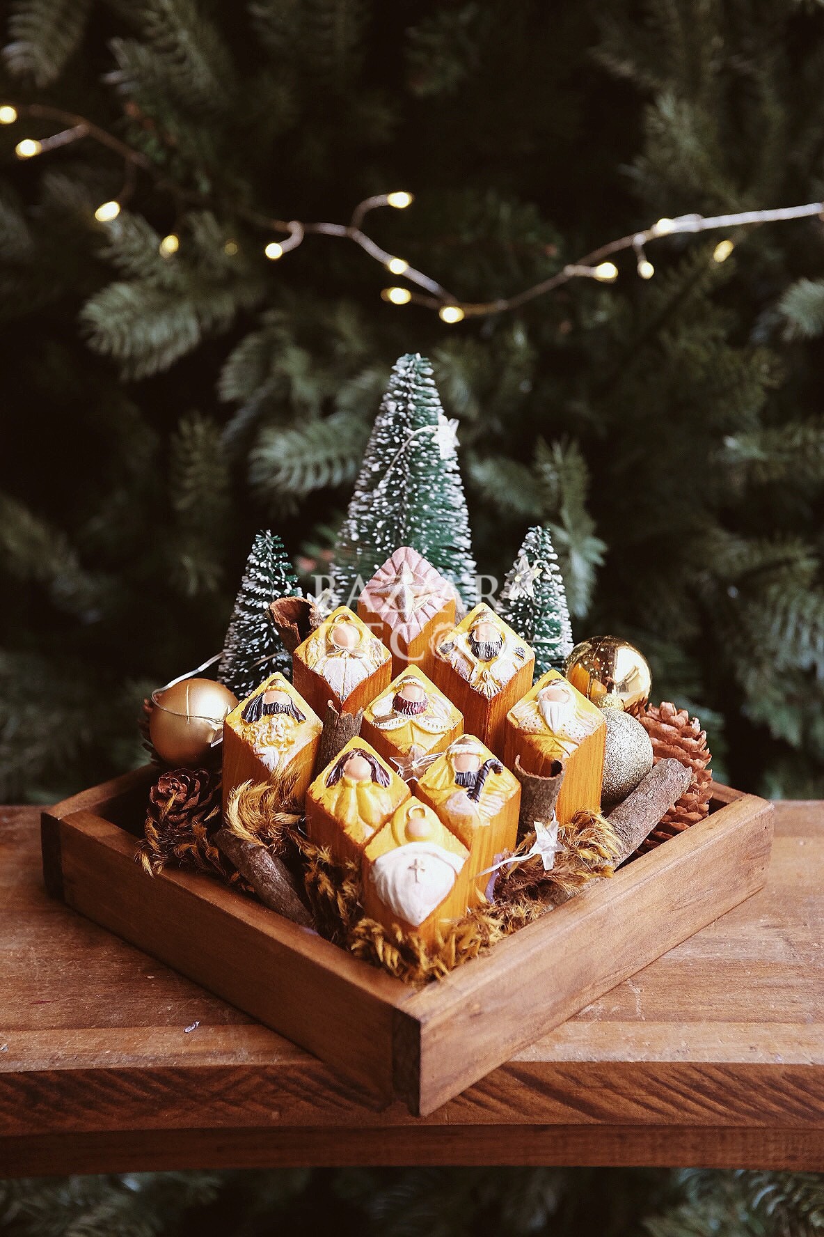 Mẫu khay gỗ được truyền cảm hứng từ câu chuyện Giáng Sinh. Gồm 9 cây cột biểu tượng, mỗi chi tiết là 1 phần của câu chuyện, tạo nên 1 tác phẩm sống động và kỳ diệu. Mặt sau sản phẩm có khắc nội dung Kinh Thánh, tăng thêm giá trị cho sản phẩm và còn là 1 lời nhắc nhở về ý nghĩa thực sự của mùa Lễ hội.