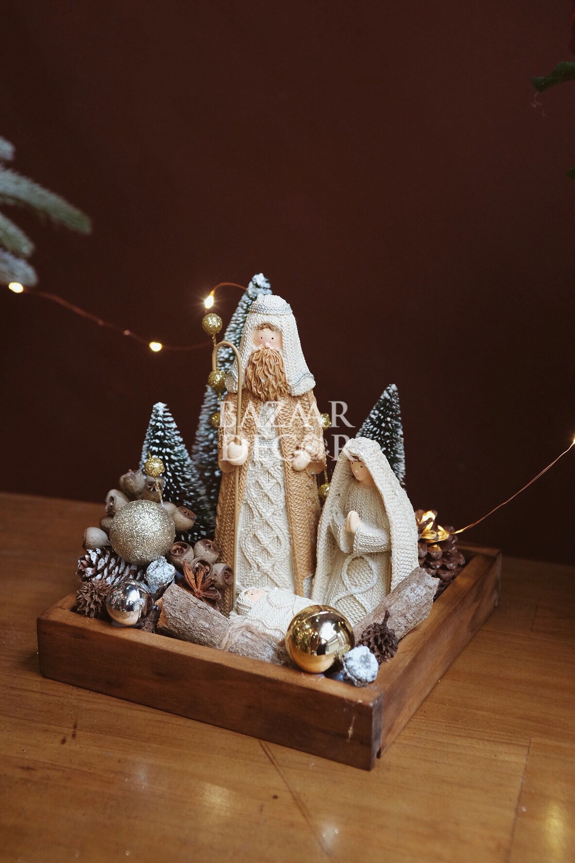 Trong không khí Giáng Sinh đầy ấm áp, có một biểu tượng mang đậm ý nghĩa về tình yêu và sự hiệp nhất - biểu tượng Gia Đình Thánh Gia. Sản phẩm khay hang đá mini của Bazaar Decor mong muốn mang câu chuyện thiêng liêng ấy vào không gian của bạn một cách tinh tế và hài hòa trong chiếc khay gỗ nhỏ xinh.