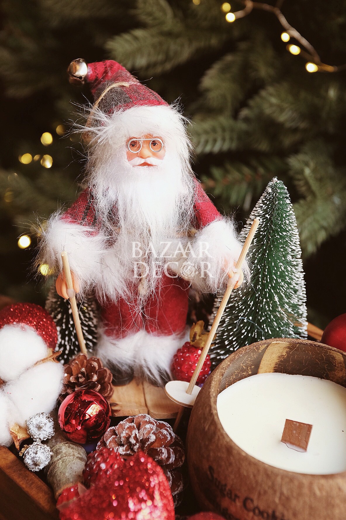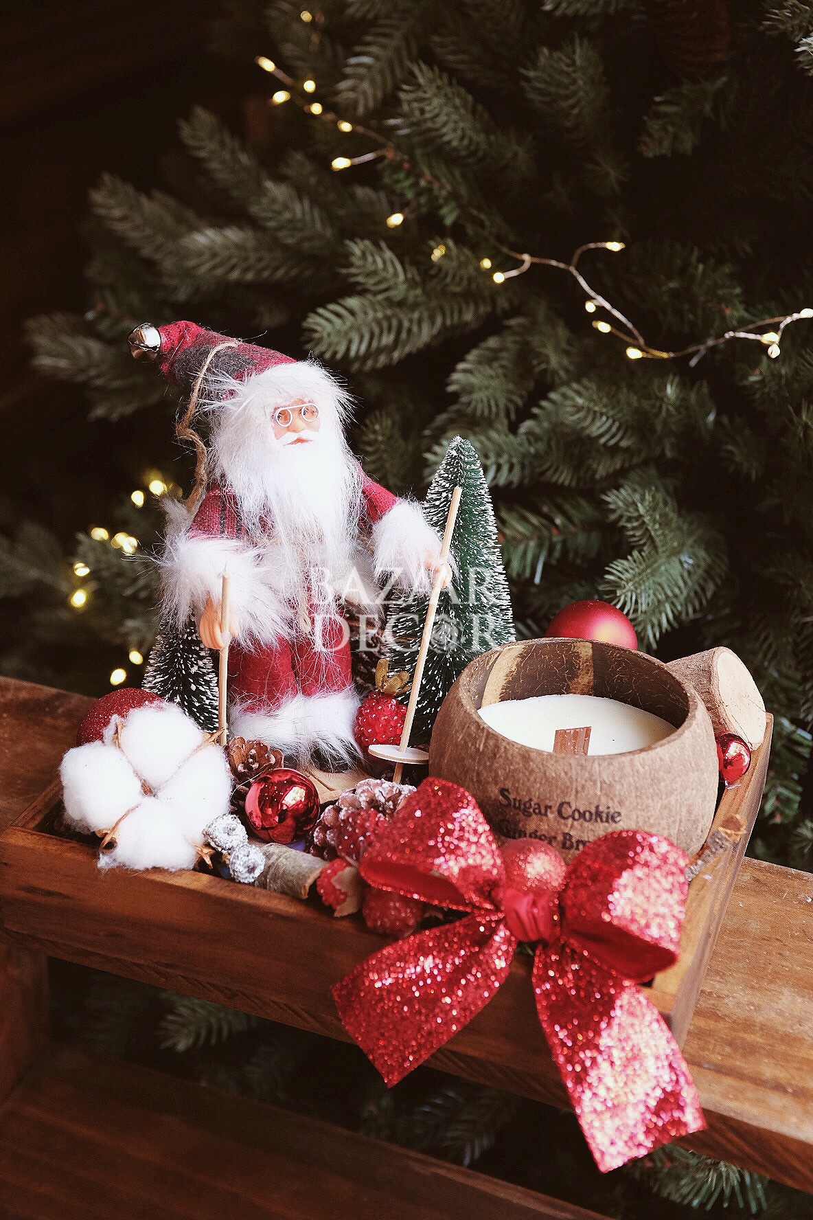 Gồm các phụ kiện xinh xắn cây thông, các loại quả khô, châu và phụ kiện, ông già Noel trượt tuyết… đặt vừa trong khay gỗ, có thể dùng trang trí quầy tính tiền, tủ kệ, bàn làm việc, bàn tiệc… tươi vui sinh động ngập tràn không khí lễ hội
