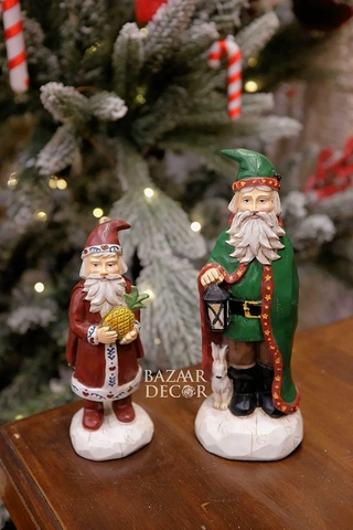 Hãng: BAZATượng cổ tích Giáng Sinh Vintage - Ông già Noel cầm đèn 20cm