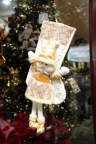 Hãng: BAZAVớ Noel gắn thú bông lớn tone trắng kem vàng 60cm - Người tuyết