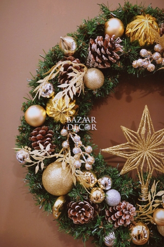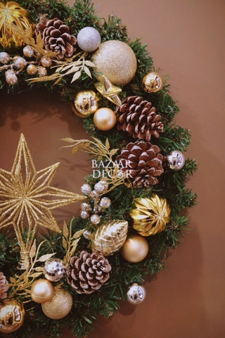 - Vòng nguyệt quế thủ công: được kết từ các loại dây lá thông, trái châu và các loại phụ kiện cao cấp theo chủ đề là biểu tượng của mùa Lễ hội Giáng Sinh ấm áp và an lành!