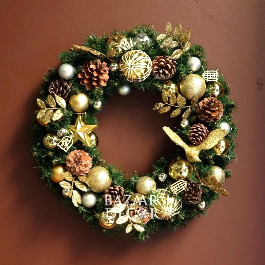 Bộ sưu tập các mẫu vòng nguyệt quế size 40cm được làm hoàn toàn thủ công, phối tone vàng lộng lẫy trái châu, phụ kiện nhiều kiểu dáng cầu kì và tinh tế làm điểm nhấn cho mùa lễ hội thêm tươi vui bừng sáng ... phù hợp treo tường, cửa kiếng, cửa gỗ... trang trí nhà, cửa hàng, showroom, nhà hàng, quán cafe, homestay, hotels, spa, studio... trang trí tiệc, events...