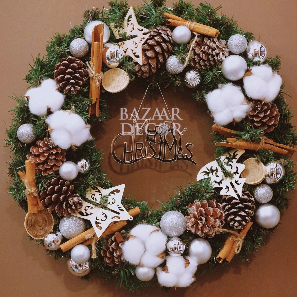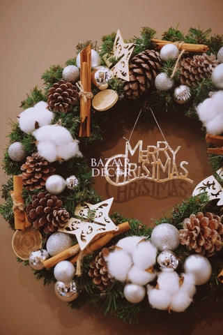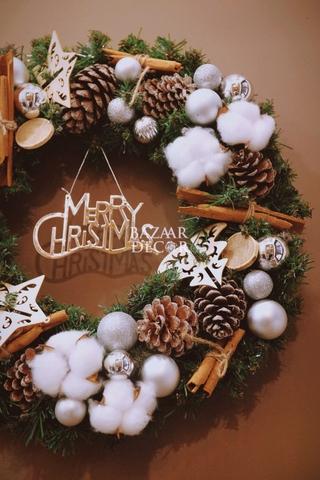 - Vòng nguyệt quế thủ công: được kết từ các loại dây lá thông, trái châu và các loại phụ kiện cao cấp theo chủ đề là biểu tượng của mùa Lễ hội Giáng Sinh ấm áp và an lành!