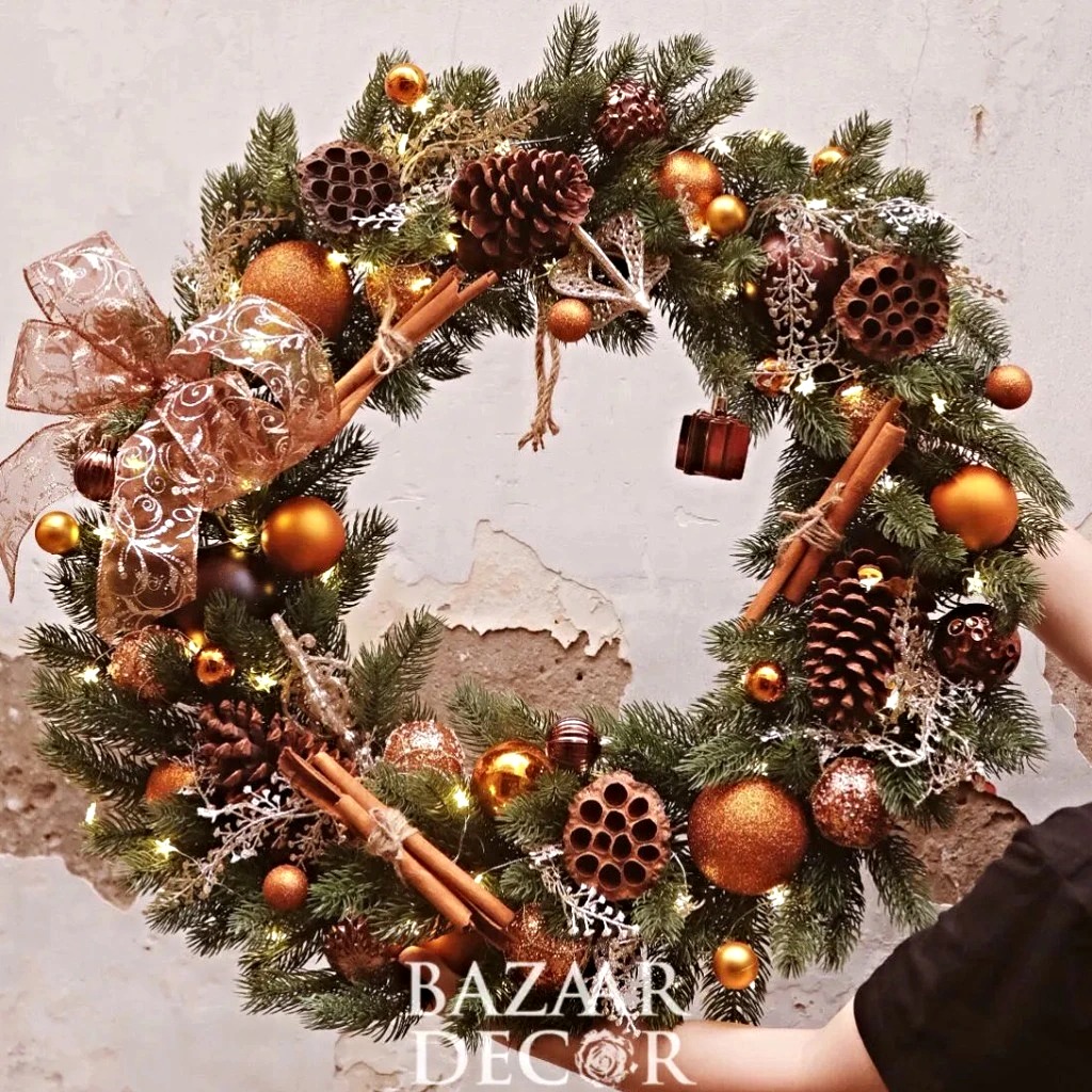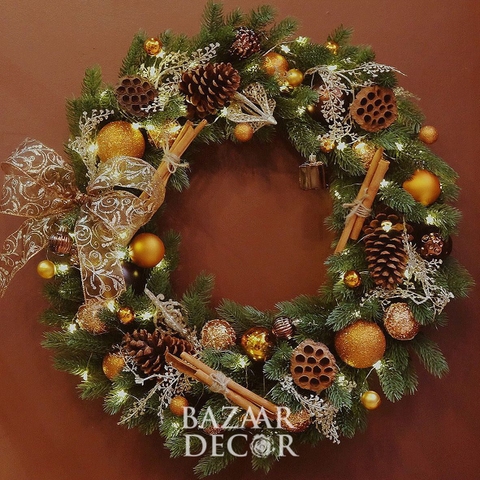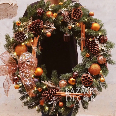 Sự kết hợp giữa tone nâu trầm và cam rực rỡ tương phản nhưng lại vô cùng lịch lãm, sẽ là 1 điều bất ngờ cho mùa Giáng Sinh năm nay.... thích hợp cho nhà có diện tích rộng, treo cửa ra vào hoặc cửa sổ lớn, khu vực sảnh các nhà hàng quán cà phê cửa hàng...