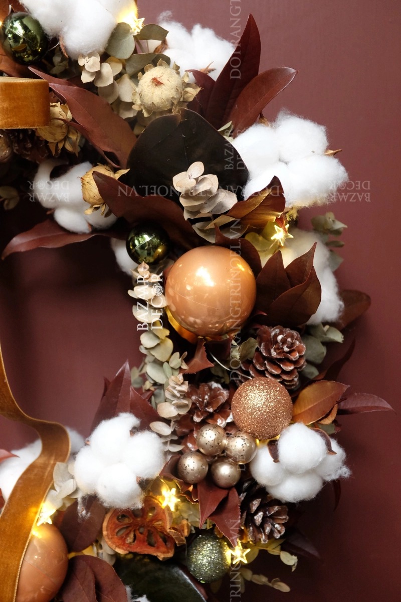 Mỗi mẫu vòng đều được chăm chút tỉ mỉ để mang đến vẻ đẹp thanh lịch và sang trọng. Sự kết hợp giữa chất liệu tự nhiên và các chi tiết trang trí tinh tế giúp mỗi chiếc vòng trở thành điểm nhấn hoàn hảo cho không gian của bạn, tràn đầy tinh thần lễ hội.