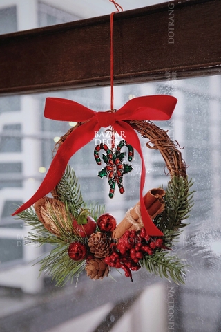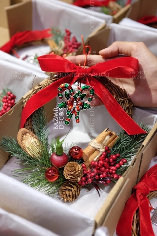 Vòng nguyệt quế mini đường kính 20cm với Charm kim loại tinh xảo, lấp lánh ánh kim loại vừa cổ điển vừa hiện đại làm điểm nhấn treo cây thông, ô cửa nhỏ, trang trí hộp quà, quà tặng nhỏ xinh cho người thân, bạn bè... trong mùa lễ hội cuối năm.