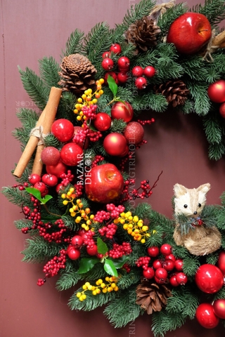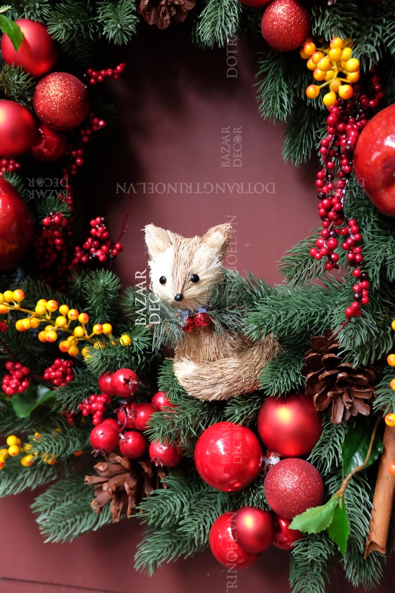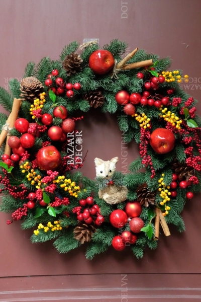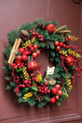 - Vòng nguyệt quế thủ công: được kết từ các loại dây lá thông, trái châu và các loại phụ kiện cao cấp theo chủ đề là biểu tượng của mùa Lễ hội Giáng Sinh ấm áp và an lành!