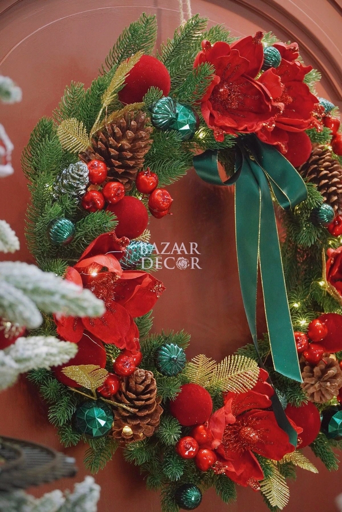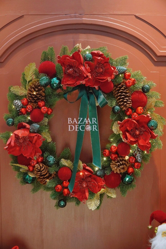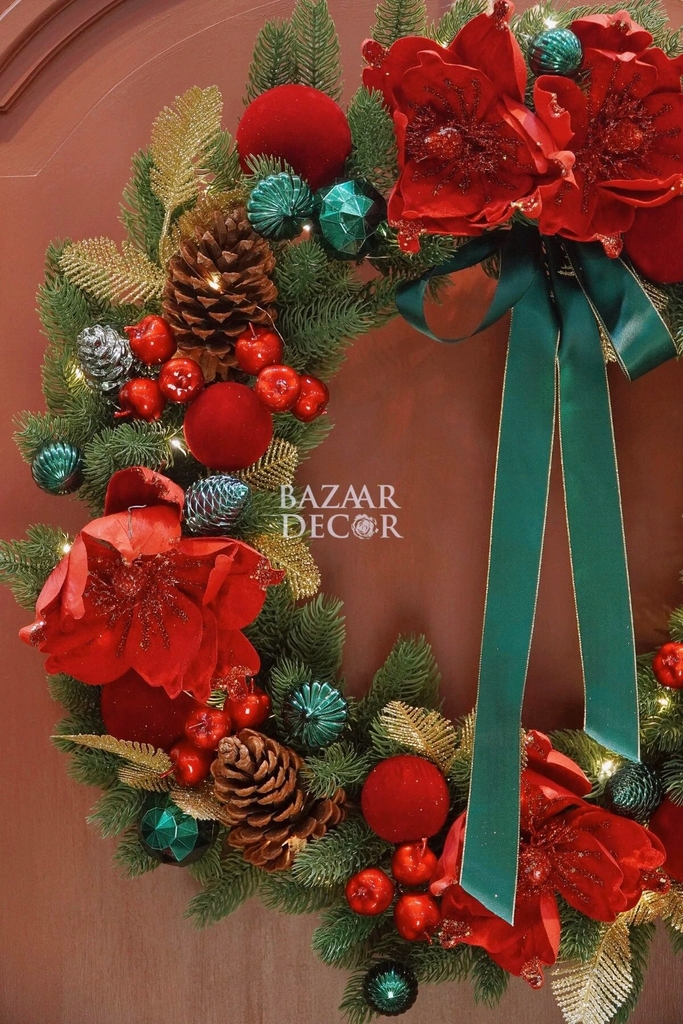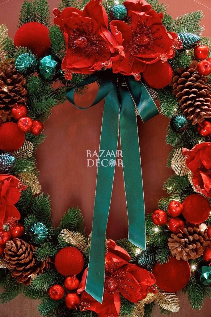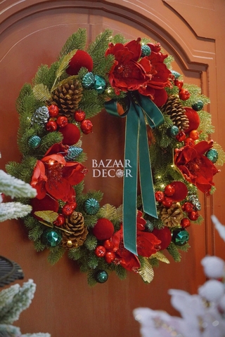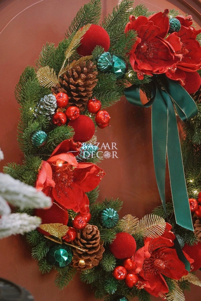 - Vòng nguyệt quế thủ công: được kết từ các loại dây lá thông, trái châu và các loại phụ kiện cao cấp theo chủ đề là biểu tượng của mùa Lễ hội Giáng Sinh ấm áp và an lành!