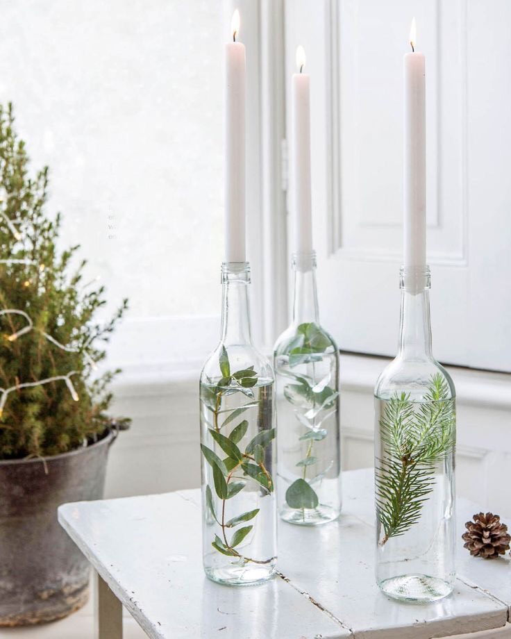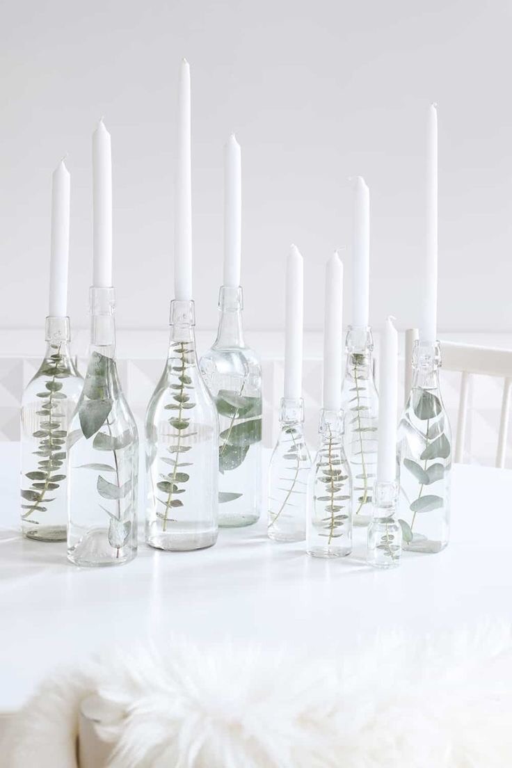 Trang trí bằng nến giúp cho không gian thêm tinh tế và khác biệt. Có thể phối với chai lọ thủy tinh cao như những ý tưởng dưới đây, thích hợp trang trí bàn ăn, phòng khách hay trong một bữa tiệc tối lãng mạn và ấm cúng...
